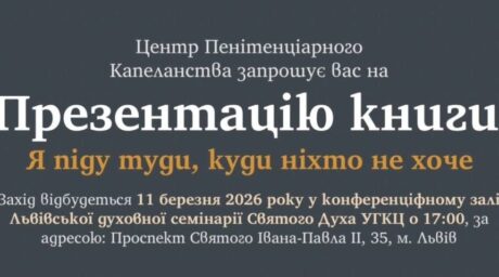 11 березня 2026 року о 17:00 год. відбудеться презентація книги з історії відродження пенітенціарно душпастирства УГКЦ «Я ПІДУ...