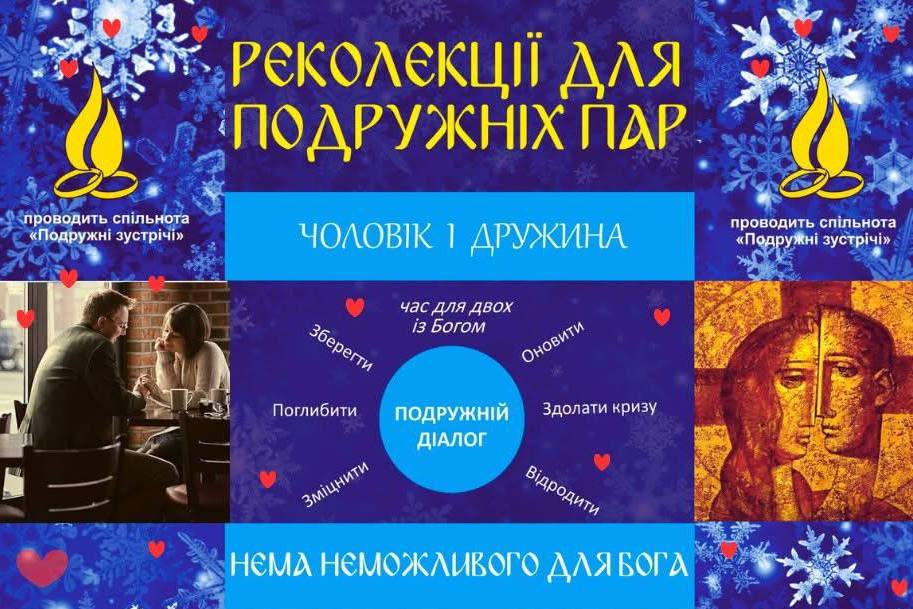 13–15 лютого відбудуться реколекції для подружніх пар за методикою «Подружніх зустрічей» УГКЦ – простір для зупинки, глибокого діалогу та оновлення подружніх стосунків.