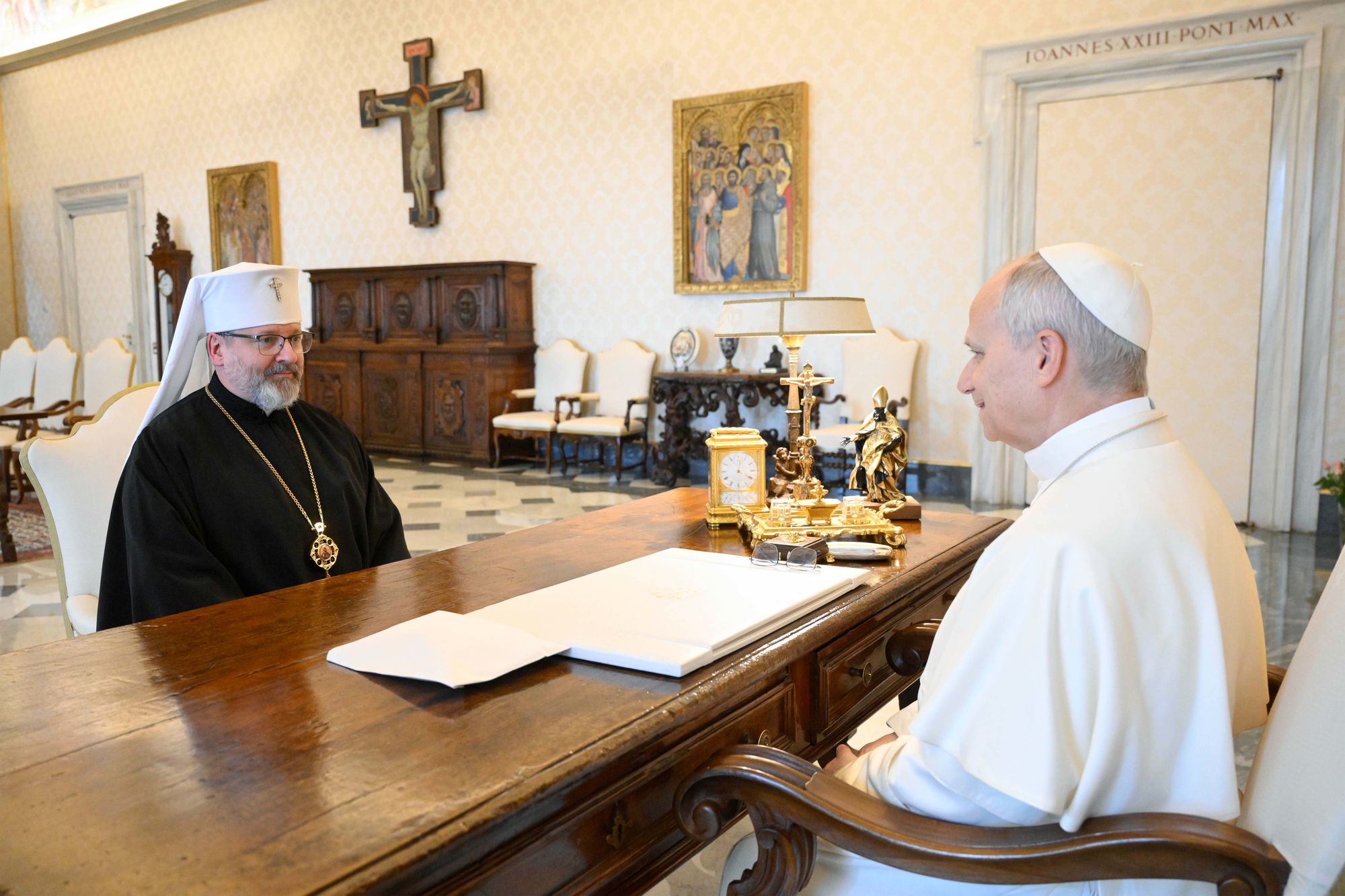 Папа Лев XIV прийняв Главу УГКЦ в Апостольському палаці Ватикану. На початку зустрічі Блаженніший Святослав подякував Святішому Отцеві за солідарність і підтримку України, дипломатичні зусилля Святого Престолу на шляху до справедливого та тривалого миру в Україні. Окрему увагу було звернено на сучасне життя УГКЦ та глобальний вимір її служіння. Блаженніший Святослав наголосив, що УГКЦ є помісною, але водночас глобальною Церквою, присутньою на всіх континентах світу. «Наша помісна Церква київського християнства є українською за походженням, але не є Церквою тільки для українців — натомість відкритою до проголошення Євангелія всім народам саме завдяки повному видимому сопричасті з Наступником апостола Петра».